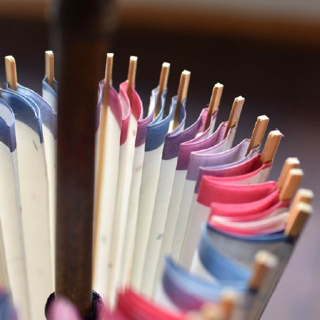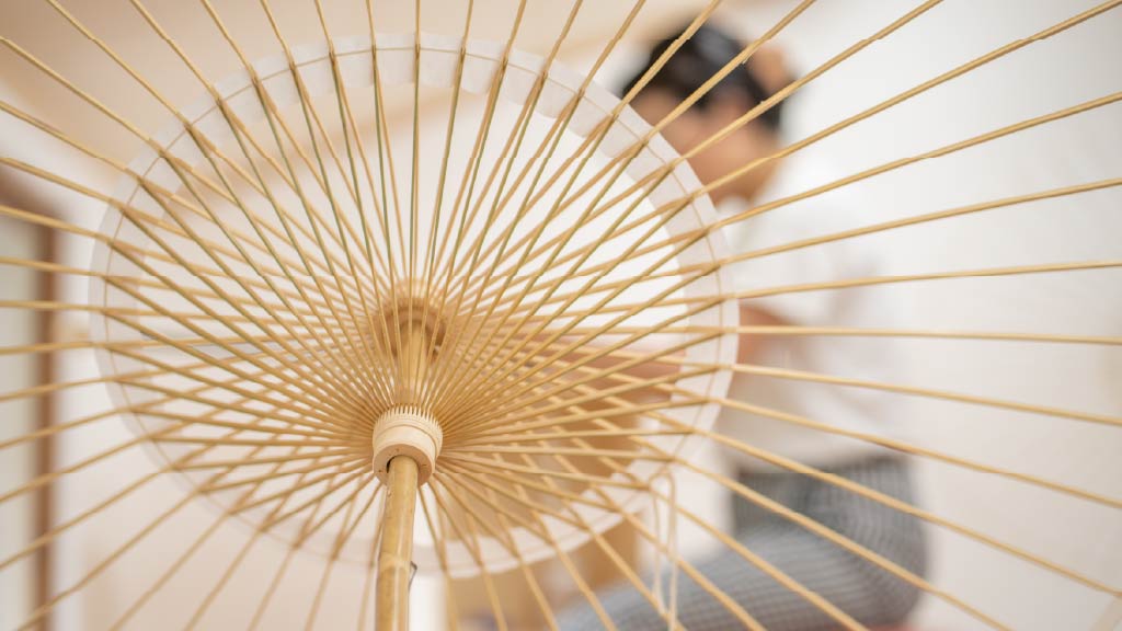 和傘づくりは100を超える工程から成り立ち、その多くは職人の「体で覚えた感覚」に支えられています。和紙の張り具合、力の入れ方、油の温度管理、漆の乾き具合 すべては経験の積み重ねであり、マニュアル化はできません。